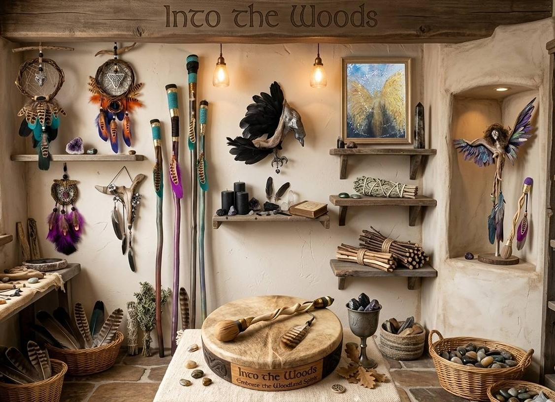 The Spirit of the Woods. Art and Reiki Fusion. Spiritual semi precious crystal and honeysuckle drum beaters for those who love to drum. Unique semi precious crystal ceremonial walking sticks. Made from sticks and honeysuckle from managed woodlands.