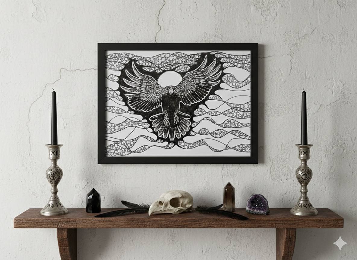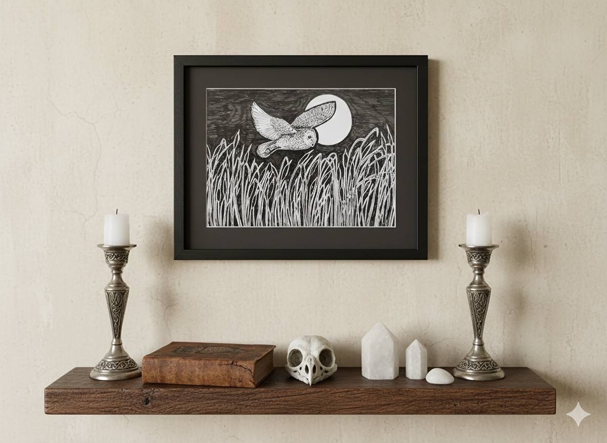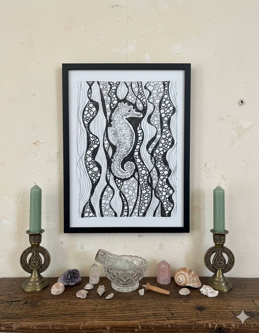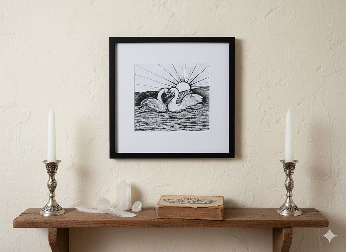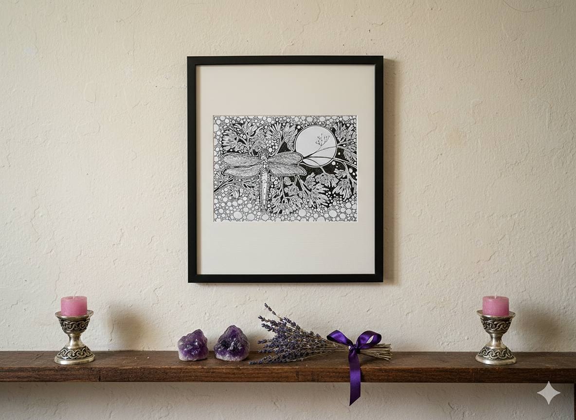 The above image is using one of my photographs of one of my pen drawings. I have edited it using AI Gemini to give you an idea of how they could look in a home.