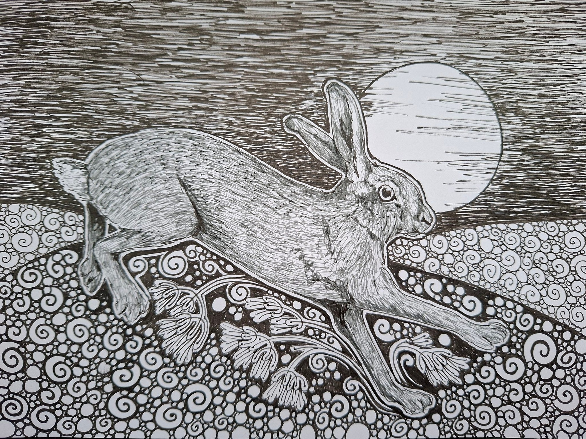 The above image is using one of my photographs of one of my pen drawings. I have edited it using AI Gemini to give you an idea of how they could look in a home. This drawing is sold.